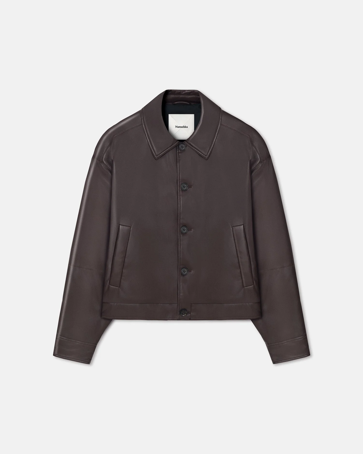 The Zaler jacket is our take on sports-inspired silhouettes. Crafted from signature OKOBOR™ alt-leather, it has a cropped boxy silhouette accentuated by rounded sleeves. Fit Standard fit, matches usual sizing. Materials and Care Shell: Coating: Polyurethane Base: 100% Polyester Lining: 100% Viscose Do not wash, do not bleach, do not tumble dry, do not iron, do not dry clean Handle with care to ensure garment lifespan. Repair or resell to support circular fashion. This product is made from a delicate fabric and has a special finish, The dark colour of this product may transfer onto light surfaces and cause damage. Please store separately and handle with care.