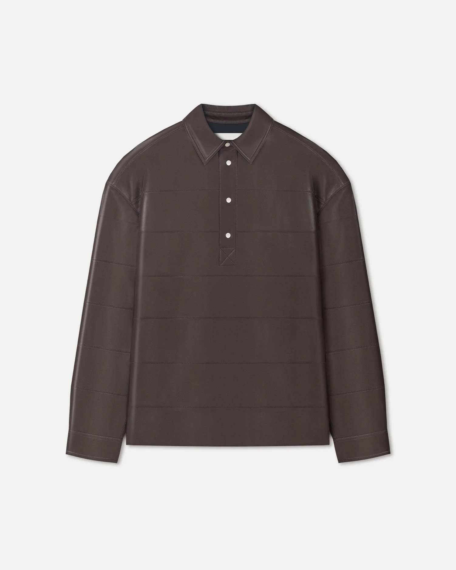 The Mateo shirt has a classic polo silhouette, but feels fresh and modern thanks to the innovative OKOBOR™ alt-leather construction. Highlighting the intricate craftsmanship, zigzag stitching adds to the contemporary feel. Fit Standard fit, matches usual sizing. Materials and Care Shell: Coating: Polyurethane Base: 100% Polyester Lining: 100% Viscose Do not wash, do not bleach, do not tumble dry, do not iron, do not dry clean Handle with care to ensure garment lifespan. Repair or resell to support circular fashion. This product is made from a delicate fabric and has a special finish, The dark colour of this product may transfer onto light surfaces and cause damage. Please store separately and handle with care.