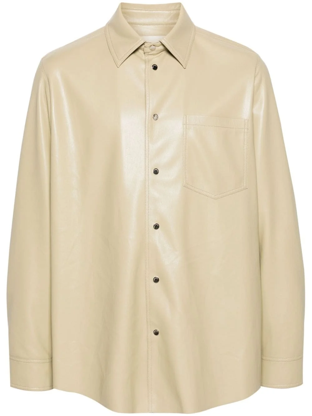 long-sleeve recycled-polyester shirt Highlights - Pale olive green - Recycled polyester - Faux leather - Front press-stud fastening - Long sleeves - Press-stud fastening cuffs - Curved hem - Raw-cut hem Imported Composition Polyurethane 100%, Recycled Polyester 100% SIZE & FIT Model measurements Height 6 ft 1 in(1.86 m) Bust/Chest 37.4 in(95 cm) Hips 36.22 in(92 cm) Waist 29.52 in(75 cm) FittingInformation Made from a midweight non-stretch fabric, this piece offers minimal elasticity when worn Washing instructions Dry Clean Only