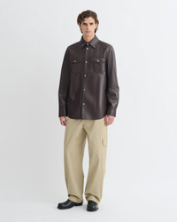 The Braylo shirt is an appreciation of craftsmanship. Made from our innovative OKOBOR™ alt-leather shirt, it has a relaxed silhouette punctuated by pintucks. A point collar, flap pockets and button-down front means it works well solo or as a layering piece. Fit Standard fit, matches usual sizing. Materials and Care Shell: Coating: Polyurethane Base: 100% Polyester Lining: 100% Viscose Do not wash, do not bleach, do not tumble dry, do not iron, do not dry clean Handle with care to ensure garment lifespan. Repair or resell to support circular fashion. This product is made from a delicate fabric and has a special finish, The dark colour of this product may transfer onto light surfaces and cause damage. Please store separately and handle with care.