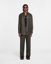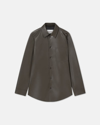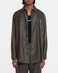 The Landis shirt is expertly tailored from our signature Okobor™ alt-leather and topped with a button-down collar. In a deep soil tone, it is designed to be worn with matching pieces in the collection. Materials and Care Shell: Coating: Polyurethane Base: 100% Polyester (Recycled) Do not wash, Do not bleach, Do not tumble dry, Do not iron, Dry clean any solvent except Trichloroethylene,This product is made from a delicate fabric and has a special finish The dark colour of this product may transfer onto light surfaces and cause damage.Please store separately and handle with care