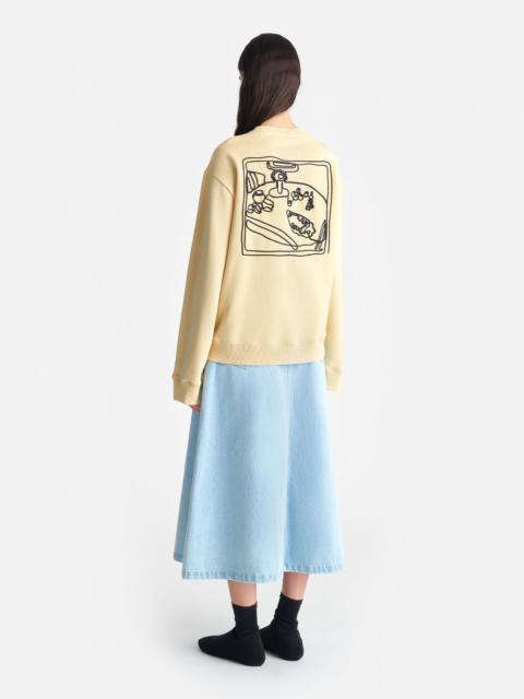 The Remy sweater is cut for a relaxed fit with the Nanushka logo embroidered on the front. The back of the sweater reveals an embroidered print of the Gingerbread Heart painting by Hungarian artist Adolf Fenyes. It's made from organic cotton fleece for superlative softness. This piece is part of the exclusive Adolf Fenyes capsule - a celebration of the artist's legacy, showcased through a curated selection of his still-life paintings. Adolf Fenyes, Still Life with Gingerbread Heart , 1907, Hungarian National Gallery Fit Intentionally designed for an oversized look. Female model is 177 cm (5'9") and wears a size S. Male model is 190 cm (6'3") and wears a size M. Materials and Care Shell: 100% Cotton (Organically Grown) Machine wash cold (20°), do not bleach, tumble dry low heat, iron low heat (110°), do not dry clean. Handle with care and wash less to ensure garment lifespan. Repair or resell to support circular fashion.