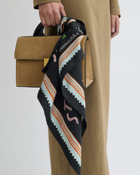 The Shoul scarf is detailed with roses, inspired by fond childhood memories of nature. Made from silk, it can be worn on your head, around your neck, or even looped around the top handle of your bag. Dimensions 65x65 (cm Materials and Care Shell: 100% Silk Do not wash, do not bleach, do not tumble dry, do not iron, do not dry clean Handle with care to ensure garment lifespan. Repair or resell to support circular fashion.