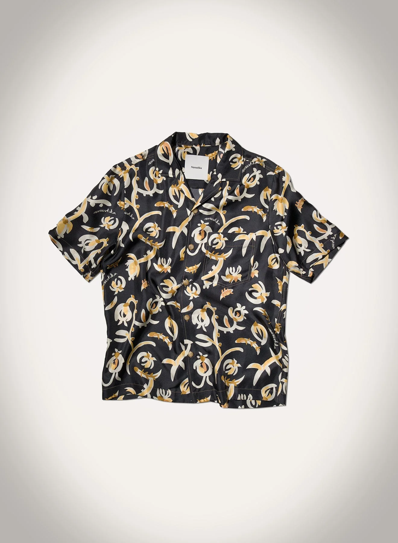 The Bodil shirt is made entirely from upcycled silk twill. Lightweight and lustrous, it has a small patch pocket and an open collar, and is finished with artful florals. Nanushka introduces RECRAFTED - a capsule reimagining the lifecycle of the Nanushka garment. With a commitment to responsible consumption, the capsule transforms surplus materials into new, elevated pieces, breathing fresh life into archive designs. Fit Intentionally designed for an oversized look. Materials and Care Shell: 100% Silk Do not wash, do not bleach, do not tumble dry, do not iron, dry clean any solvent except trichloroethylene Handle with care to ensure garment lifespan. Repair or resell to support circular fashion.