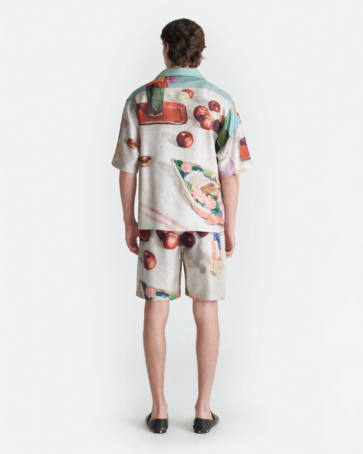 The Doxxi shorts are a long-standing Nanushka style prized for their modern sense of ease and versatility. Crafted from lustrous twill silk, they’re printed with the Gingerbread Heart painting by Hungarian artist Adolf Fenyes. An elasticated drawstring waist and knee-length silhouette keep things practical. This piece is part of the exclusive Adolf Fenyes capsule - a celebration of the artist's legacy, showcased through a curated selection of his still-life paintings. Adolf Fenyes, Still Life with Gingerbread Heart, 1907, Hungarian National Gallery Fit Standard fit, matches usual sizing. Model is 190 cm (6'3") and wears a size M. Materials and Care Shell: 100% Silk Do not wash, do not bleach, do not tumble dry, do not iron, dry clean any solvent except trichloroethylene. Handle with care to ensure garment lifespan. Repair or resell to support circular fashion.