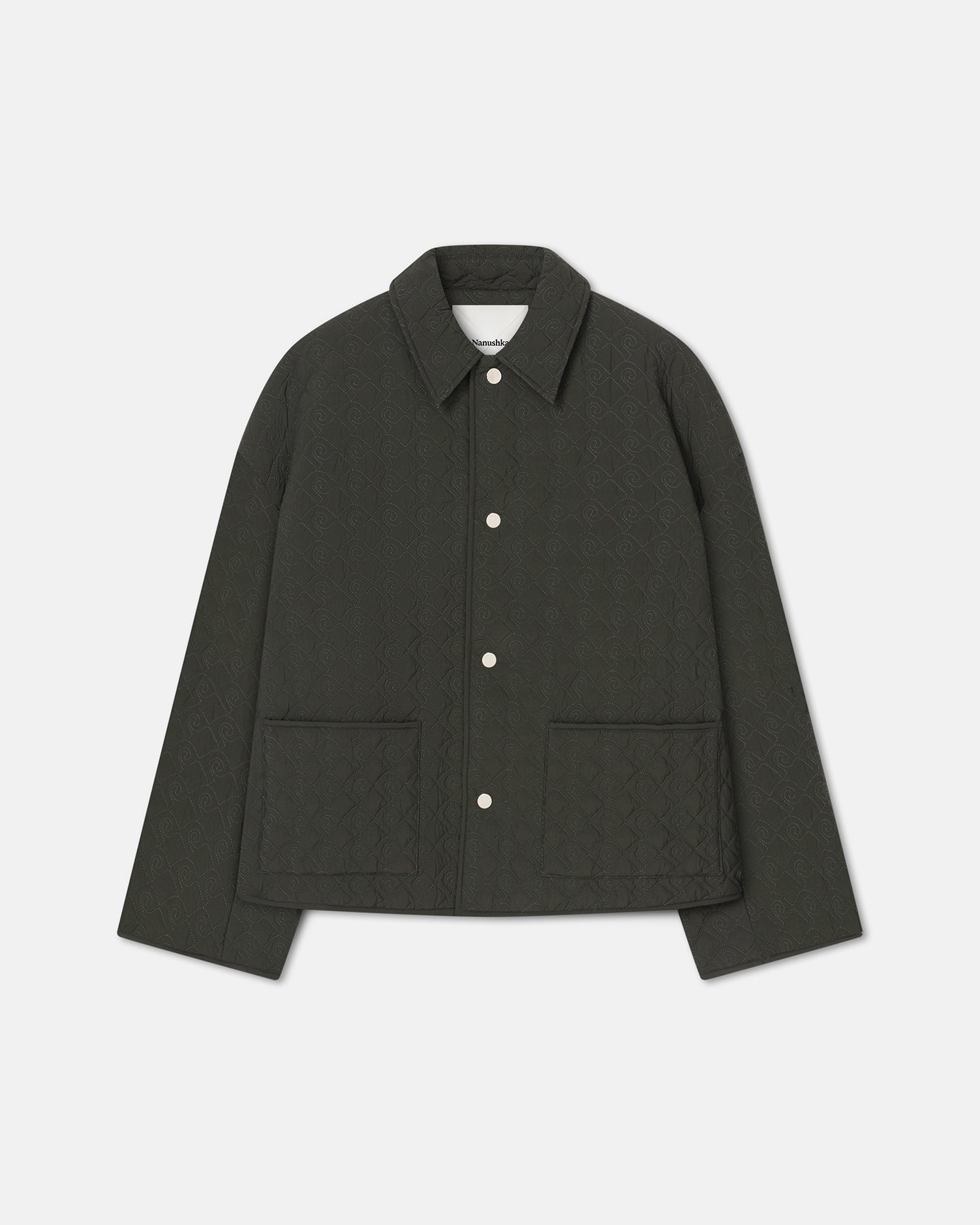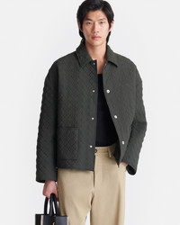 Fabric manipulation creates something unexpected this season. Made from quilted nylon, the textured Gibbson jacket becomes a fresh, modern take on classic workwear silhouette. The fit is boxy, with a pointed collar and capacious waist pockets. Fit Standard fit, matches usual sizing. Model is 185 cm (6'1") and wears size M. Materials and Care Shell: 62% Nylon (Recycled) 38% Nylon Hand wash, do not bleach, do not tumble dry, iron low heat (110°), gentle dry clean any solvent except trichloroethylene. Handle with care and wash less to ensure garment lifespan. Repair or resell to support circular fashion.