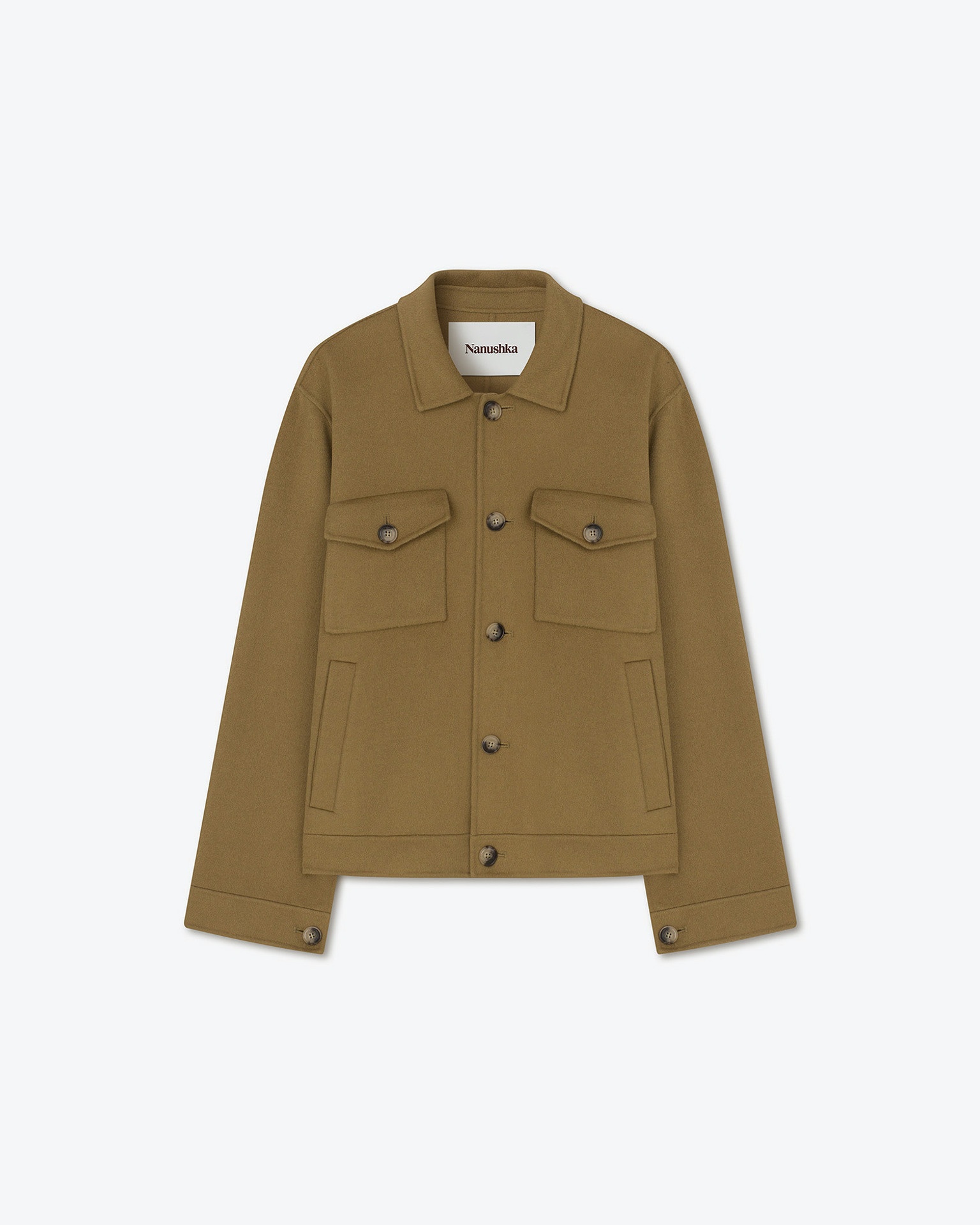 The Rhys jacket is crafted from a double-faced blend of wool and silk for a luxuriously soft finish. The versatility of the deep khaki tone is matched by the neat boxy fit, with button-fastenings and patch pockets. Shell 90% WOOL, Shell 10% SILK, Lining 100% POLYESTER