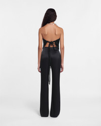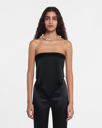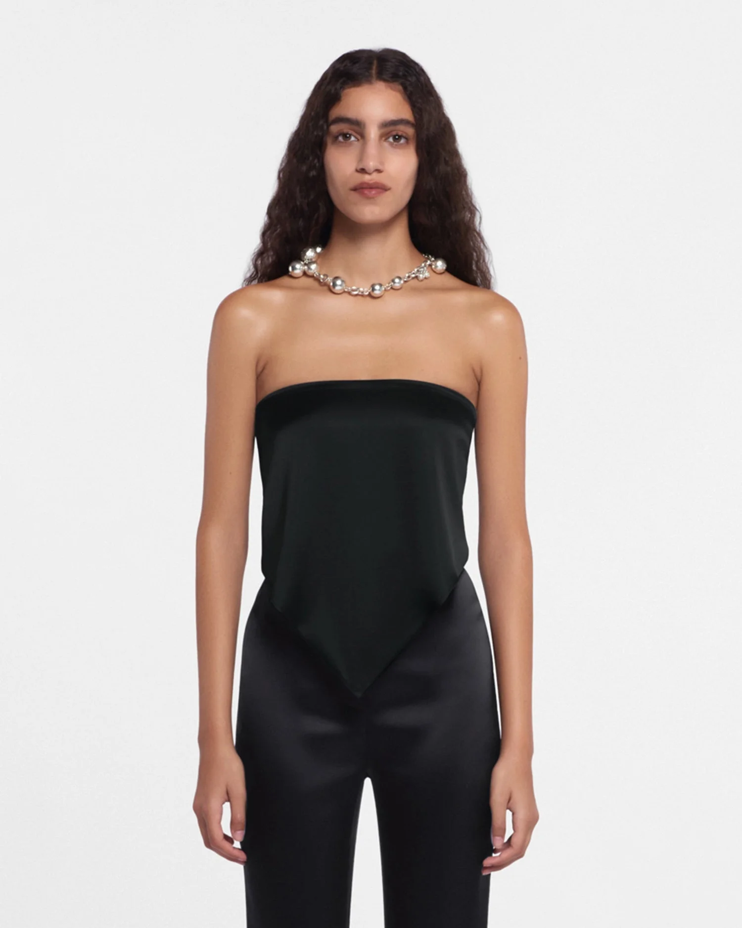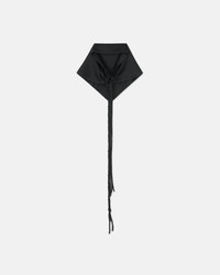 The Brita headscarf is made from slip satin and finished with trailing macrame ties. It comes in classic black for endless versatility, and can also be worn a bandeau top in the warmer months. Materials and Care Shell: 81% Acetate 19% Polyester Recycled Machine Wash Warm (30°), Do Not Bleach, Do Not Tumble Dry, Iron Low Heat (110°), Dry Clean Any Solvent Except Trichloroethylene