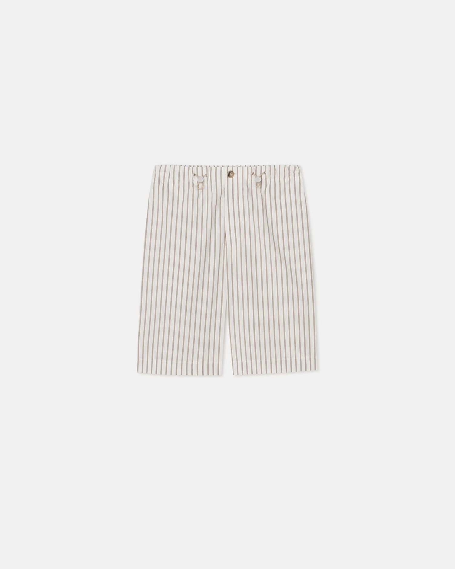 Our design philosophy centres around the elevation of wardrobe classics by emphasising the human aspect within the intricate process of garment creation. Expertly tailored and crocheted with contrasting stripes, the Felix shorts sit high on the waist before falling in a fluid A-line shape. Adjustable elastic details at the waist ensure comfort and flexibility. Fit Intentionally designed for an oversized look. Materials and Care Shell: 100% Organic Cotton Machine wash warm (40°) permanent press, do not bleach, do not tumble dry, iron low heat (110°), dry clean any solvent except trichloroethylene. Handle with care and wash less to ensure garment lifespan. Repair or resell to support circular fashion.