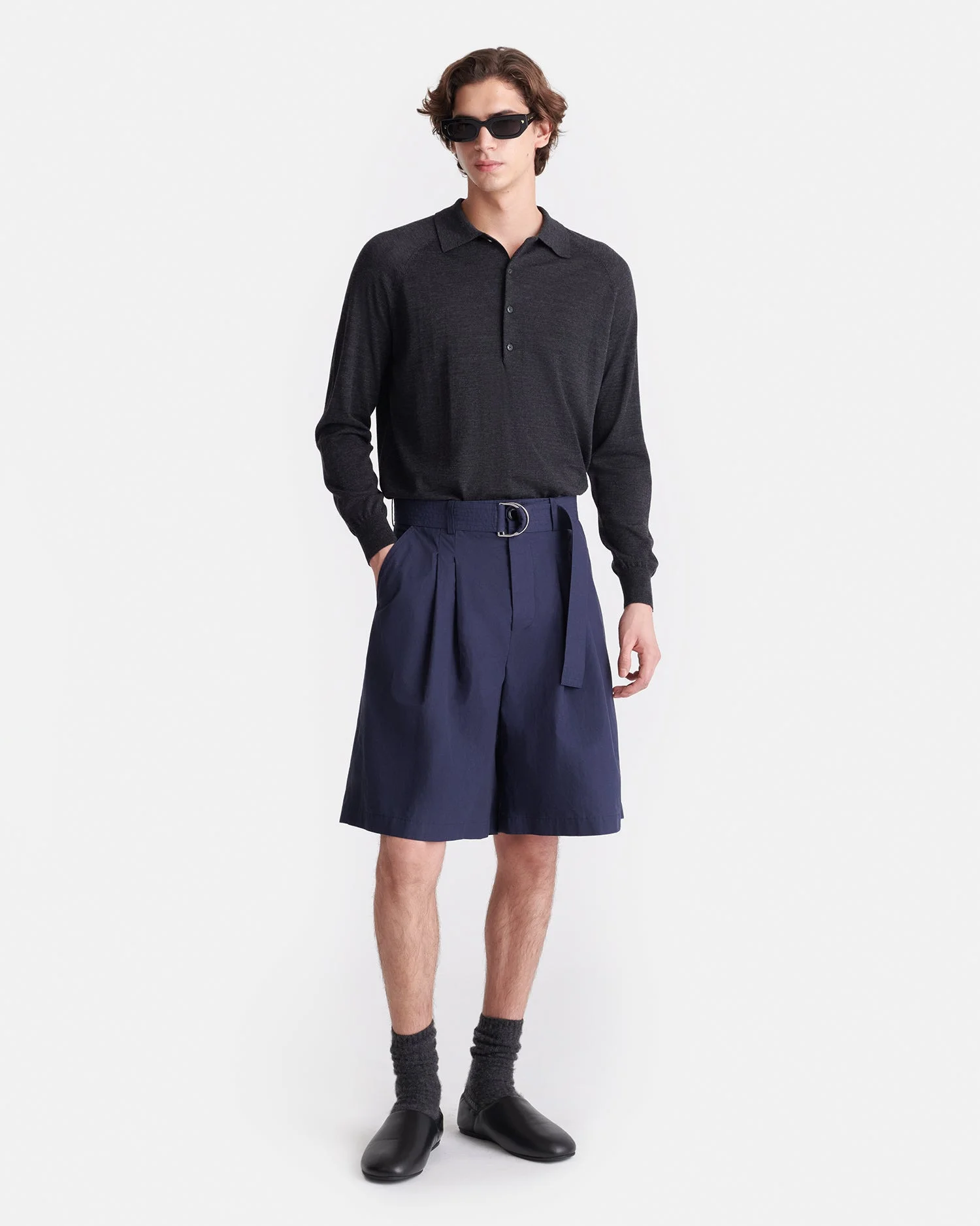 The Derulo shorts have loose, barrel-shaped legs cut off right below the knee, offset by pressed creases and a D-ring belt at the waist. The easy-going silhouette and workwear-inspired heavy poplin make for a contemporary contrast. Fit Intentionally designed for an oversized look. Model is 190 cm (6'3") and wears size M. Materials and Care Shell:100% Cotton Machine wash warm (30°), do not bleach, tumble dry low heat, iron low heat (110°), dry clean any solvent except trichloroethylene. Handle with care and wash less to ensure garment lifespan. Repair or resell to support circular fashion.