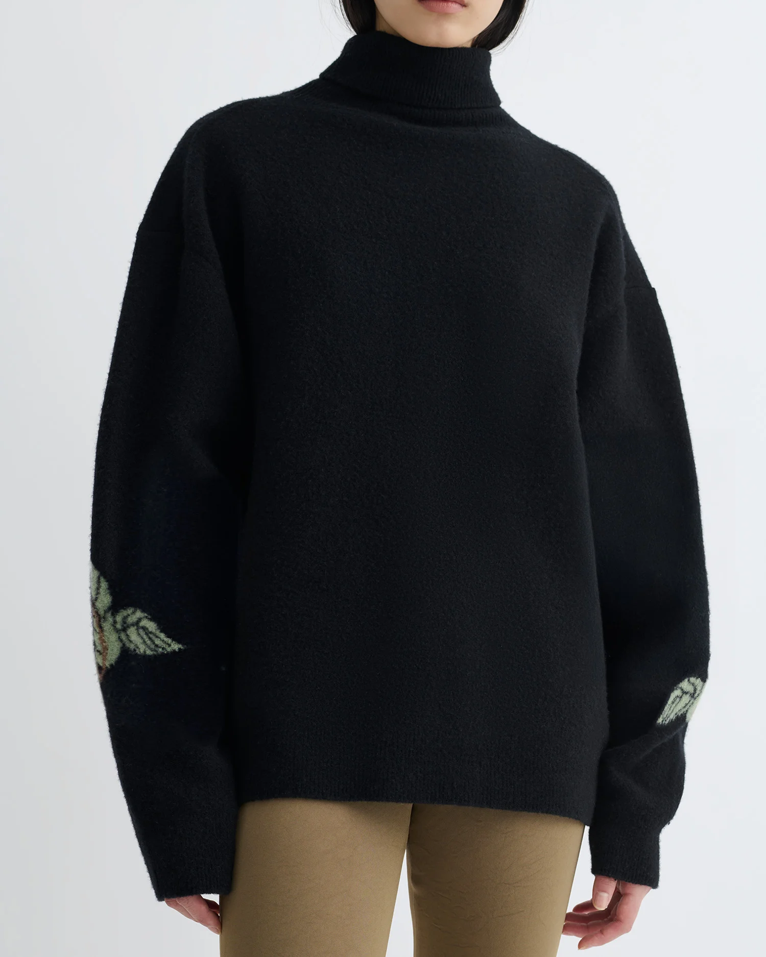 The Frannie sweater is decorated with roses at the sleeves, intricate detailing inspired by traditional Hungarian postage stamps. It has a cosy, enveloping fit knitted from super-soft brushed merino wool. Fit Intentionally designed for an oversized look. Materials and Care Shell: 93% Merino, 6% Polyamide, 1%Elastane Hand wash, do not bleach, do not tumble dry, iron low heat (110°), dry clean any solvent except trichloroethylene, dry flat Handle with care and wash less to ensure garment lifespan. Repair or resell to support circular fashion.