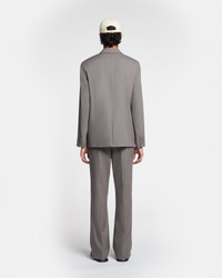 The Loic pants define our vision of easy elegance. Designed to pool at the ankles, they are crafted from gull-grey twill and feature the classic belt-loop waistband and front pleats. Pair them with the coordinating double-breasted blazer. Fit Regular fit, true to size. Regular fit suit pants Twill suiting material Concealed front fastening Belt loops Two jetted pockets on the back Model is 191 cm (6'3'') and wears a size 48. Materials and Care Shell: 100% Wool Lining: 70% Cotton 30% Polyamide Do not wash, do not bleach, do not tumble dry, iron low heat (110°), gentle dry clean any solvent except trichloroethylene.handle with care to ensure garment lifespan. repair or resell to support circular fashion.