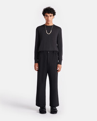 The Arnaud pants have an smart yet easy-going feel. They are made from twill suiting in classic black and fall in relaxed legs. Adjustable elastic details at the waist ensure comfort and flexibility. Fit Standard fit, matches usual sizing. Model is 189 cm (6'5'') and wears a size M. Materials and Care Shell: 54% Polyester 44% Wool 2% Elasthane Do not wash, do not bleach, do not tumble dry, do not iron, gentle dry clean any solvent except trichloroethylene this product is made from a delicate fabric and has a special finish, the dark colour of this product may transfer onto light surfaces and cause damage, please store separately and handle with care. handle with care to ensure garment lifespan. repair or resell to support circular fashion.