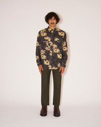 ZANDER - Cotton-linen oversized floral shirt - Black