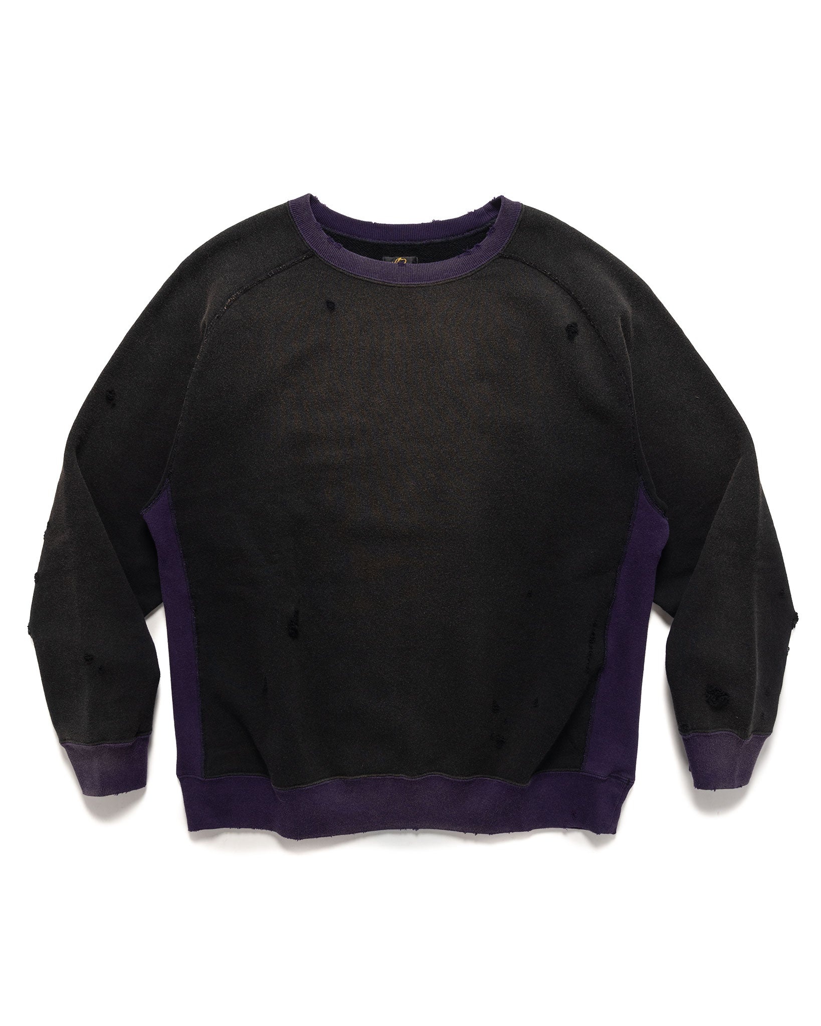 The Needles 2-Tone Crew Neck Sweat Shirt reinterprets classic sportswear with a bold two-tone construction and meticulous hand-distressing. Designed to replicate the look and feel of vintage clothing, it features realistic damage and fading treatments. Raglan sleeves and a relaxed silhouette offer a comfortable fit, while ribbed side panels and smooth four-needle flat seam stitching ensure attention to detail in both comfort and design. This artisanal piece brings a vintage aesthetic to a wardrobe staple. DETAILS - PU292 - 100% Cotton - Relaxed fit - Raglan sleeve construction - Two-tone colour blocked design - Hand distressed and fading treatment - Crewneck style - Ribbed collar, cuffs and hem - Made in Japan