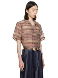 Semi-sheer polyester- and cupro-blend organza shirt. Jacquard stripes and metallic thread detailing throughout. · Open spread collar · Button closure · Patch pockets · Partial cotton poplin lining Supplier color: Beige/Pink