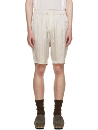 Triacetate- and cupro-blend georgette shorts. Jacquard stripes throughout. · Drawstring at elasticized waistband · Four-pocket styling · Mock-fly · Logo graphic embroidered at front Supplier color: Beige Body: 42% triacetate, 40% cupro, 18% polyester. Trim: 100% rayon. Made in Japan 241821M193001