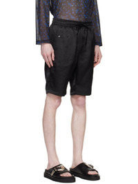Slub polyester sateen shorts. · Drawstring at elasticized waistband · Four-pocket styling · Logo embroidered at front · Unlined Supplier color: Black