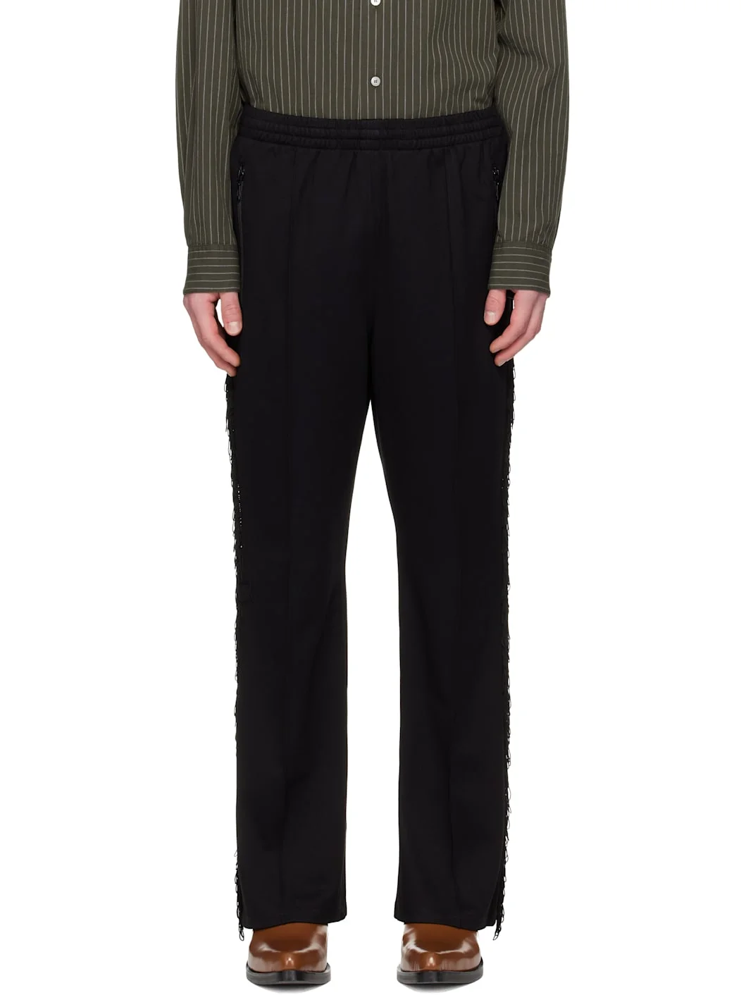 Stretch nylon-blend jersey track pants. · Concealed drawstring at elasticized waistband · Three-pocket styling · Pinched seam at front legs · Logo embroidered at front · Fringed detailing at outseams Supplier color: Black Body: 69% rayon, 29% nylon, 2% polyurethane. Trim: 100% rayon. Made in Japan 251821M190012