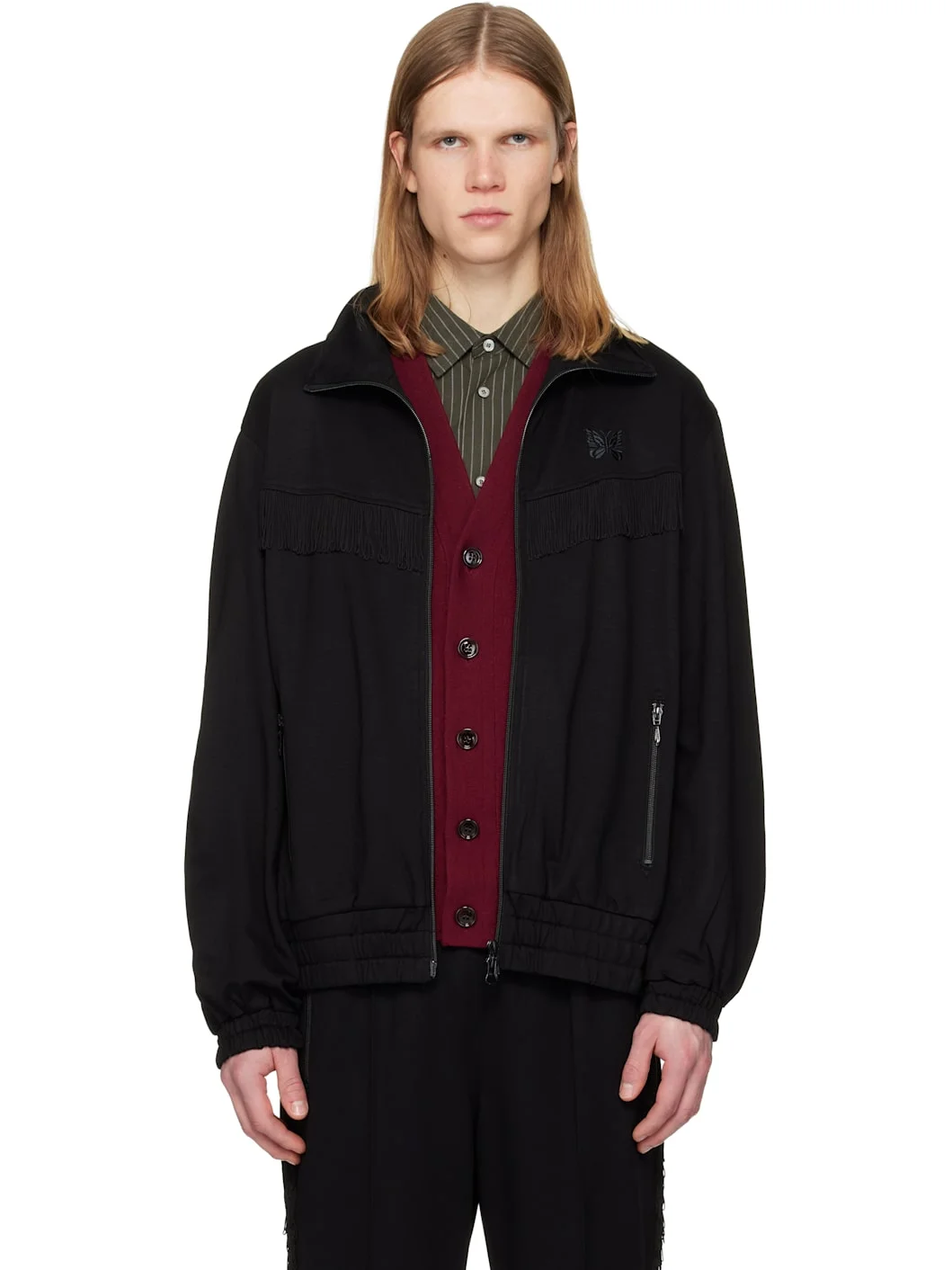 Stretch nylon-blend jersey track jacket. · Stand collar · Two-way zip closure · Fringed detailing at chest and back · Logo embroidered at chest · Zip pockets at front · Elasticized hem and cuffs Supplier color: Black Body: 69% rayon, 29% nylon, 2% polyurethane. Trim: 100% rayon. Made in Japan 251821M190015