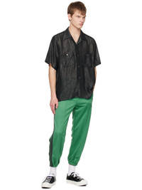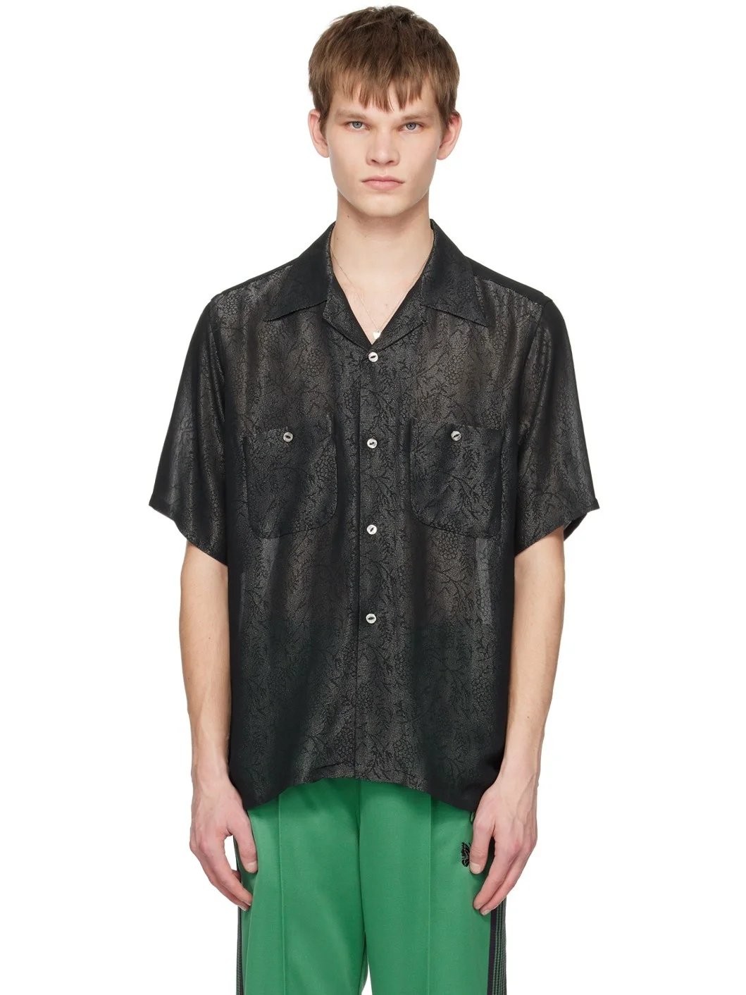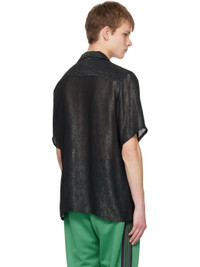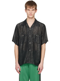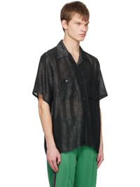 Semi-sheer rayon-blend chiffon shirt. Metallic thread detailing and jacquard graphic pattern throughout. · Open spread collar · Button closure · Patch pockets Supplier color: Silver