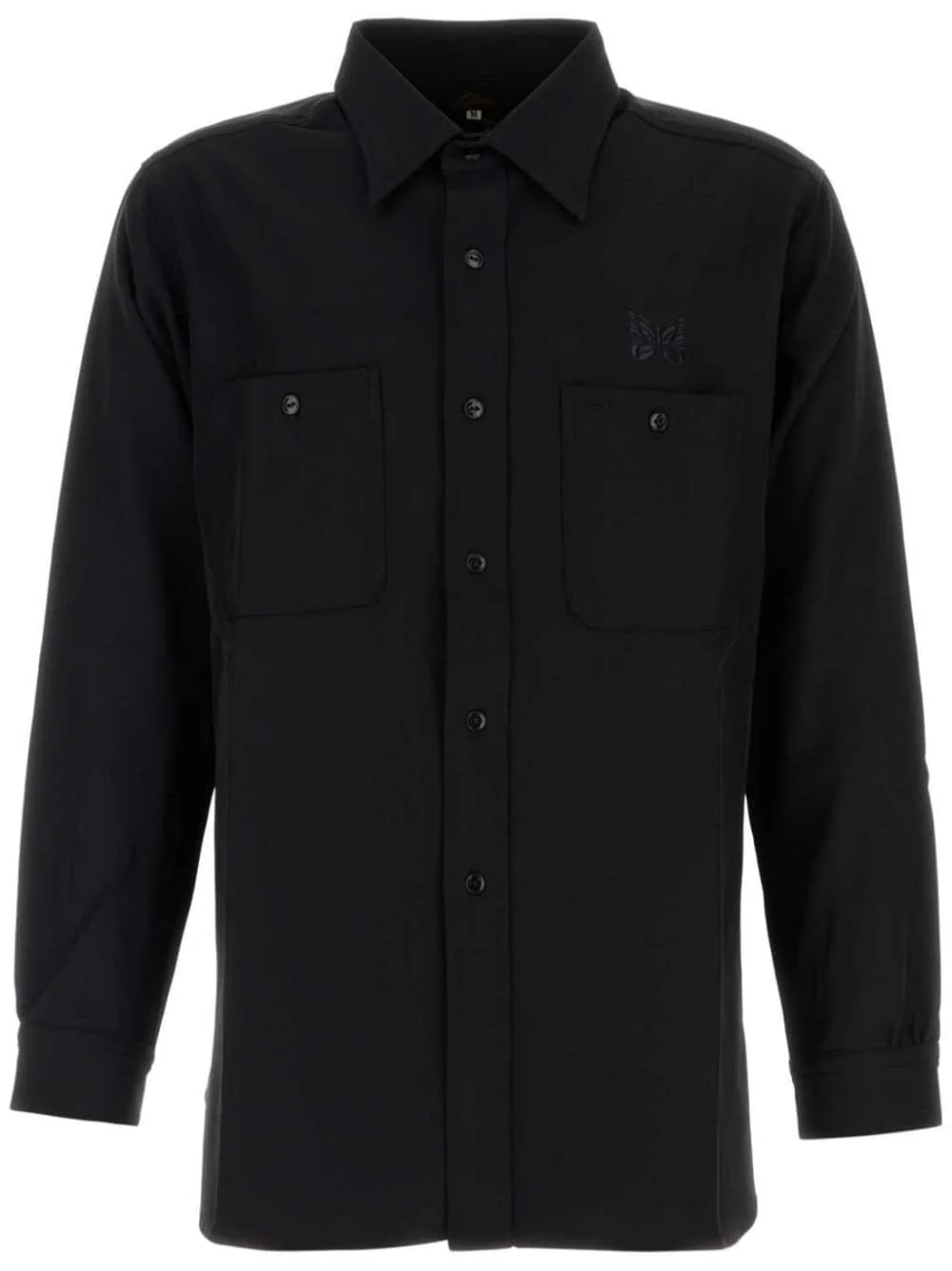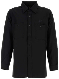 twill shirt Highlights - Black - Twill weave - Front button fastening - Straight-point collar - Two chest patch pockets - Long sleeves - Buttoned cuffs - Straight hem - When buying this unisex item, keep in mind that it is graded in standard men's sizing. Imported Composition Polyester 71%, Rayon 24%, Polyurethane 5%