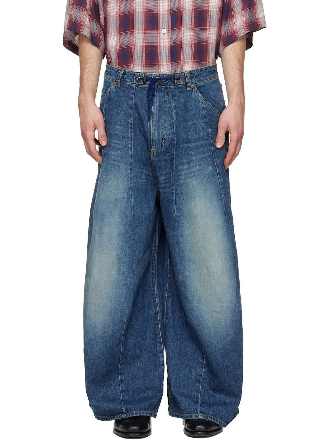 Non-stretch denim jeans. · Fading and whiskering throughout · Belt loops and cord-lock drawstring at waistband · Five-pocket styling · Zip fly · Darts at front Supplier color: Indigo 100% cotton. Made in Japan 252821M186002