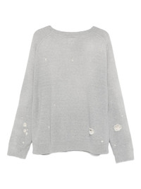 butterfly-patch distressed sweater Highlights - Grey - Butterfly motif - Distressed effect - Round neck - Long sleeves - Ribbed cuffs Imported Composition Cotton 100% Washing instructions Hand Wash