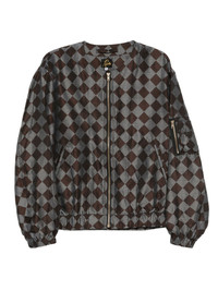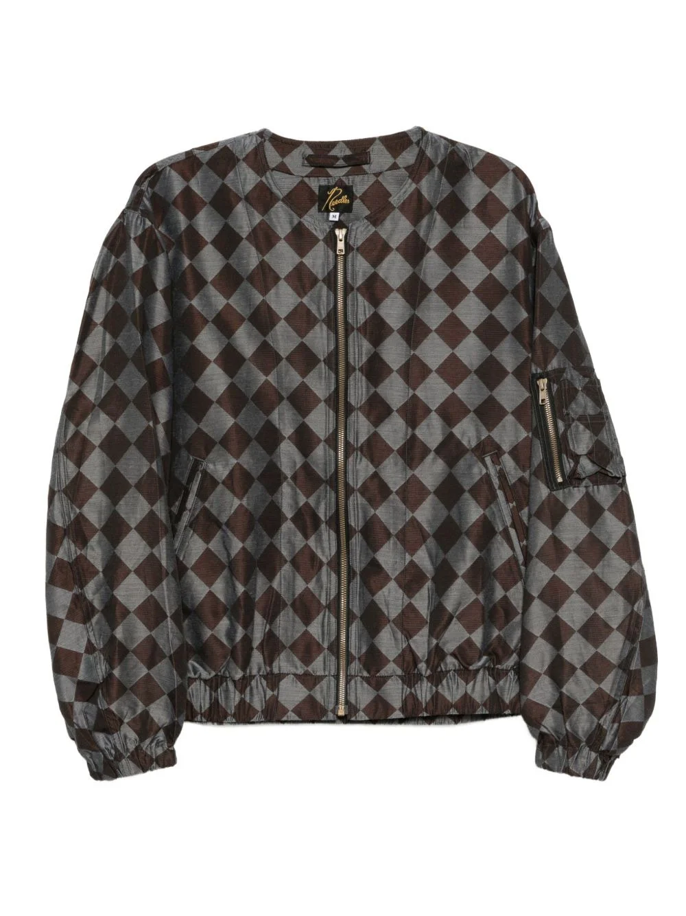 checked jacket Highlights - Navy blue - Front zip fastening - Two front jetted pockets - Sleeve zip pocket Imported Composition Polyester 63%, Rayon 37% Washing instructions Machine Wash