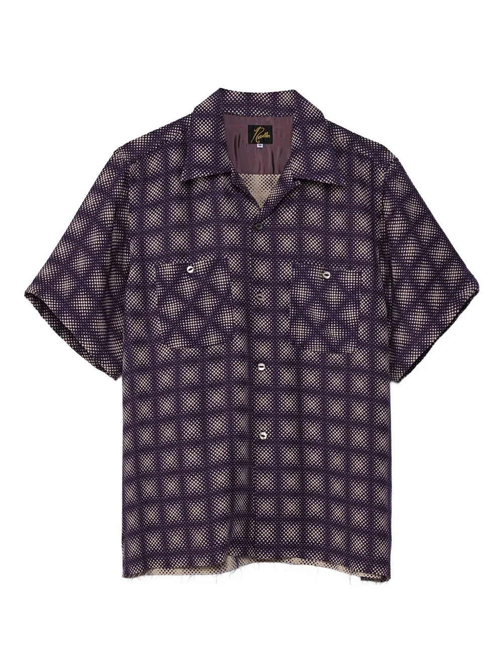 checked shirt Highlights - Purple - Short sleeves - Front button fastening - Chest patch pockets - Frayed hem Imported Composition Cupro 51%, Acetate 49% Washing instructions Read Manufacturer Guidelines
