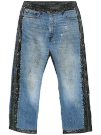 contrasting-trim jeans Highlights - Black - Indigo blue - Cotton - Washed denim - Distressed finish - Elasticated drawstring waistband - Contrasting trim - Classic five pockets - Straight leg - This product is crafted from upcycled materials so the one you receive may differ slightly from the item pictured. Imported Composition Outer: Nylon 100%, Cotton 100% Lining: Nylon 100% SIZE & FIT Model measurements Height 6 ft 1 in(1.85 m) Bust/Chest 35.82 in(91 cm) Hips 37.79 in(96 cm) Waist 29.13 in(74 cm) FittingInformation Designed with a straight leg, these jeans allow for an unrestricted and comfortable fit over the leg Adjust this piece’s waistband to your preference using the drawstring Sturdy and hard-wearing, this denim piece offers no stretch