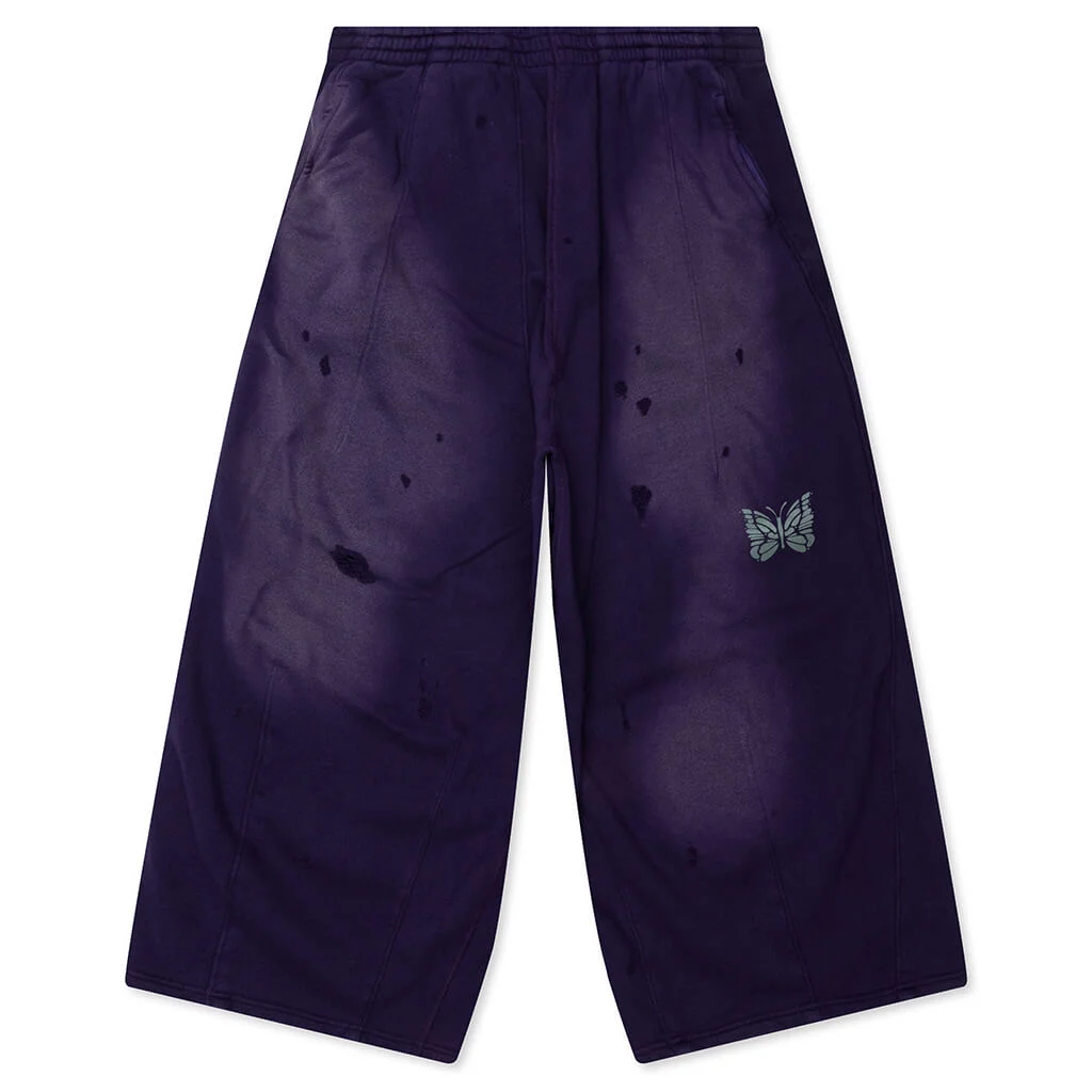 Needles presents the Cotton French Terry Deconstructed Sweatpant. Crafted from cotton, it is cut to have a baggy fit with a wide leg. The sweatpant is designed to have a unique silhouette with a large puffed front due to darts at the waist and hem. Featuring an elastic drawstring waistband and side-entry pockets. Distressing and fading add a worn-in feel, while a screen-printed motif adds the final branded touch. - 100% Cotton - Baggy fit - Wide leg - Elastic drawstring waistband - Side-entry pockets - Screen-printed logo - Dart details - Distressing and fading - Style No: RW337-B-PUR