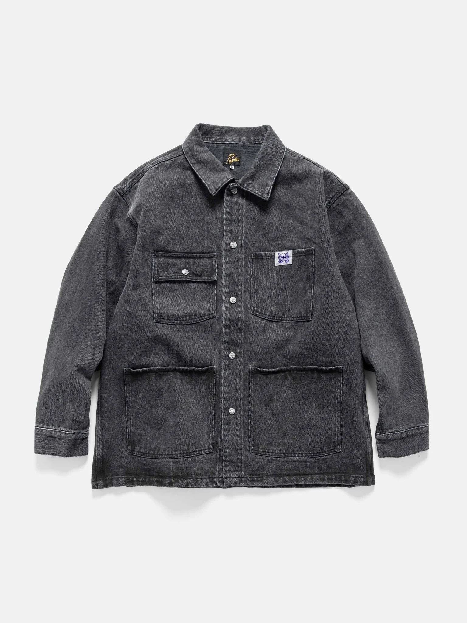 The Needles Coverall reworks a classic workwear silhouette in rugged heavy twill with a distinctly refined finish. A heavy wash brings out the fabric’s texture, giving it a worn-in, dimensional feel from day one. The traditional four-pocket layout stays true to its roots, while papillon snap buttons add a subtle, signature contrast. Tough yet considered, it’s a coverall that balances durability with Needles’ offbeat elegance. DETAILS - RW213 - 100% Cotton - Relaxed fit - Wash treatment - Snap front closure - Patch chest pockets - Patch hand pockets - Snap cuffs - Custom 'Papillon' snaps throughout - Woven 'Papillon' label at chest - Made in Japan