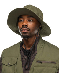 Classic outdoors inspired hat constructed in a light and durable oxford cloth. Featuring a stitching design throughout providing a unique textured look as well as structure, shape and reinforcement. Finished with a wide brim for shelter from the sun, eyelets for ventilation and an adjustable chin strap for a secure fit. DETAILS - OT055 - 75% cotton, 25% nylon - Oxford cloth - Stitching reinforcement - Structural stitching - Wide brim - Adjustable chin strap - Made in Japan