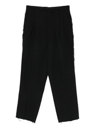 frayed trousers Highlights - Black - Frayed detailing - Belt loops - Front pleats - Side pockets - Back pockets Imported Composition Outer: Wool 75%, Linen/Flax 25% Lining: Cupro 100% SIZE & FIT Model measurements Height 6 ft 2 in(1.87 m) Bust/Chest 37.79 in(96 cm) Hips 37.79 in(96 cm) Waist 30.31 in(77 cm) Washing instructions Dry Clean Only