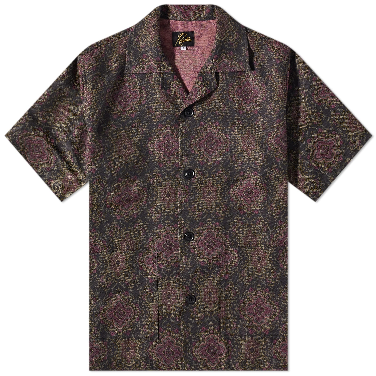 Needles Cabana shirt is a breezy summer favourite. This season it returns in an intricately woven arabesque jacquard fabric with its classic oversized, open collar silhouette still intact. Retro and bold, it’s the perfect partner to easy shorts and plain white tees. - 62% Cotton, 38% Polyester - Hand Wash - Button Closure - Chest Pocket - Made in Japan