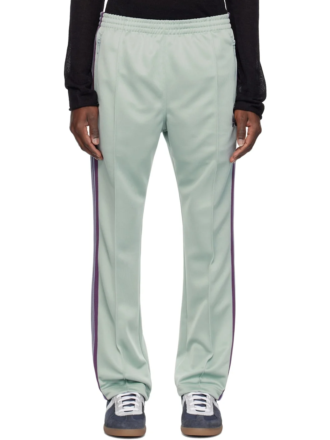 Polyester interlock jersey track pants. · Concealed drawstring at elasticized waistband · Three-pocket styling · Pinched seams and embroidered logo graphic at front · Striped knit trim at outseams Supplier color: Sax Body: 100% polyester. Trim 1: 100% polyester. Trim 2: 100% rayon. Made in Japan 251821M190031
