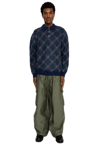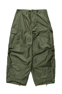 - Elastic waist with strings - A unique silhouette with a large bulging front due to a unique pattern - Relaxed fit - Color: Olive - 100% cotton - Made in Japan - Style #: MR235 - Model is 6'3" wearing size L