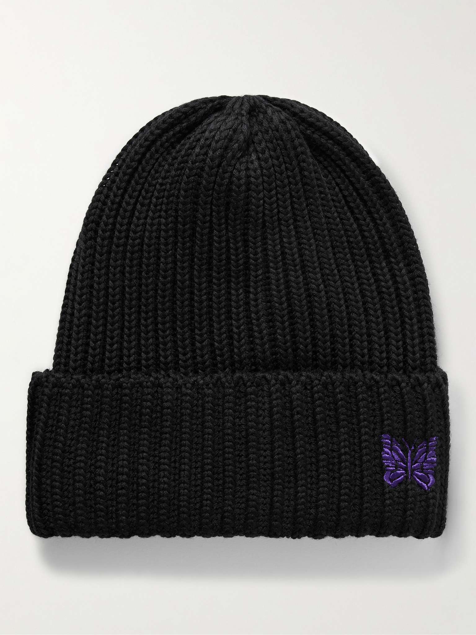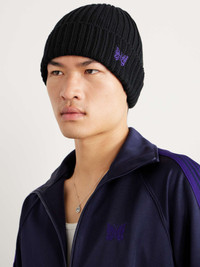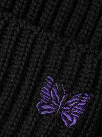 Needles' beanie is knitted from merino wool, in thick ribs which lend it an even cosier feel. It's embroidered with a butterfly on the turned-up brim - a sweet calling card of the Japanese brand. Size & Fit - Circumference: 46cm / 18.1in - Width: 23cm / 9.1in Details & Care - Black merino wool - 100% merino wool - Dry clean - This item has been imported