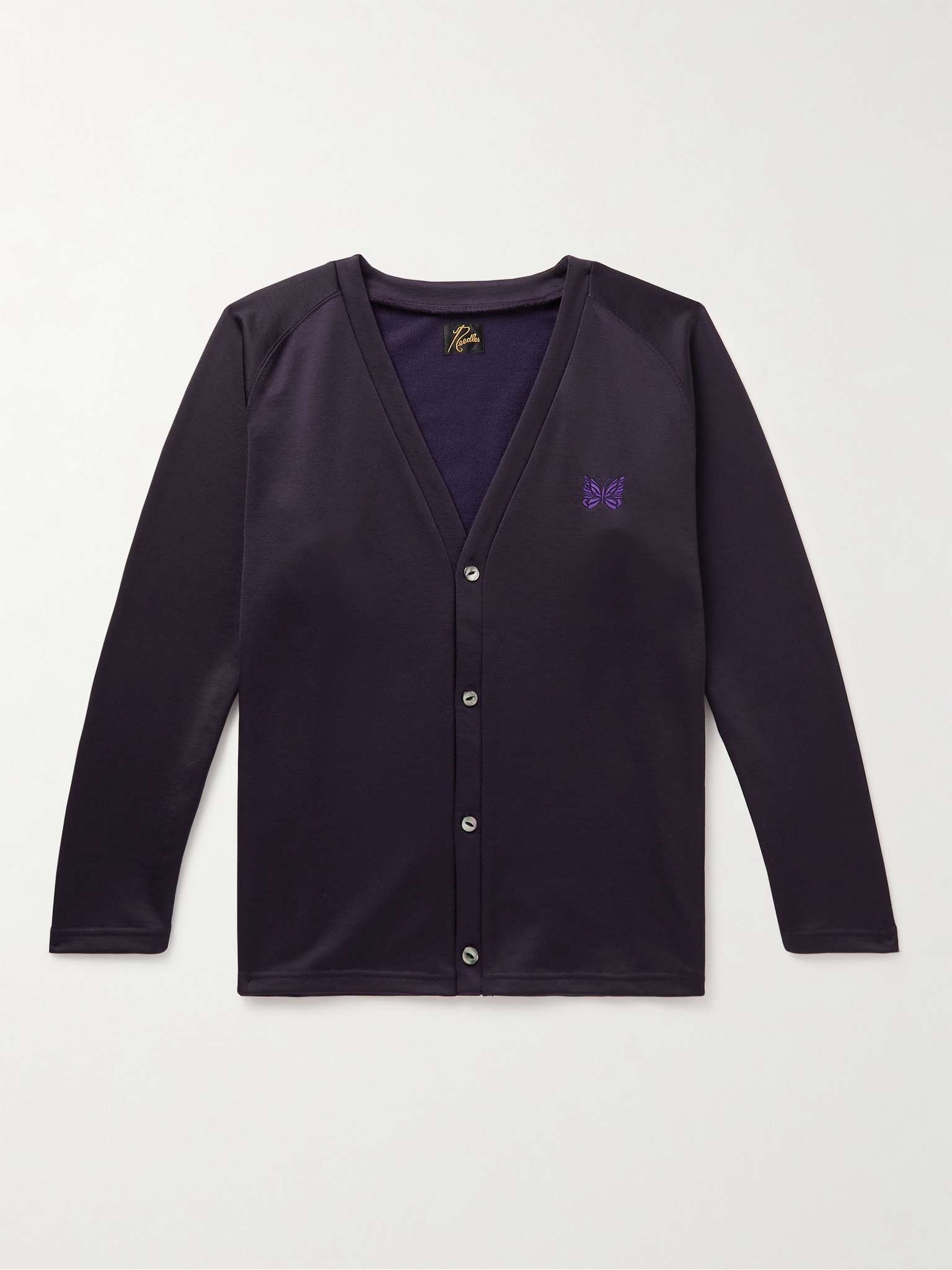 Needles often puts an exciting twist on classic American styles. This cardigan has been made in Japan from tech-jersey in a rich 'Eggplant' hue and features the label's signature 'butterfly' motif embroidered at the chest. Size & Fit - Fits true to size. Take your normal size - Designed for a relaxed fit - Mid-weight, stretchy fabric - Model is shown wearing a M - Model measures: chest 38"/ 96cm, height 6'1"/ 185cm Details & Care - Grape tech-jersey - Button fastenings - 57% polyester, 43% cotton - Hand wash - Designer colour: Eggplant - This item has been imported