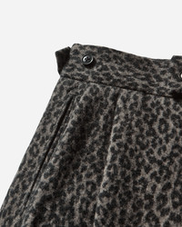Needles Leopard Jacquard Side Tab Tucked Trousers Charcoal The Side Tab Tucked Trouser reinterprets classic tailoring with Needles’ signature twist. Made in charcoal wool with leopard pattern, it features a relaxed fit and a side tab closure. Perfect for layering or wearing as a statement piece, it blends heritage fabrics with modern proportions. - 90% Wool, 10% Nylon - Relaxed Fit - Leopard Jacquard Pattern - Hook and Loop Closure - Zip-Fly - Pleats at Front - Adjustable Side Tab - Two Side Pockets - Two Back Pockets - Made in Japan - Style Code: RW139 GREY