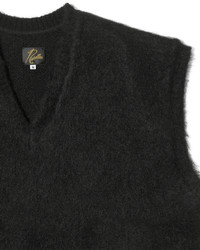 Inspired by classic knitwear traditions, the Needles Mohair Knit Vest in Black brings a modern twist to vintage style. Crafted with a rich mohair blend, this vest delivers warmth and subtle texture through its fuzzy finish. The black shade pairs perfectly with layered looks, adding a refined yet eye-catching element to your wardrobe. - 55% Mohair - 30% Nylon - 15% Wool - Made in Japan