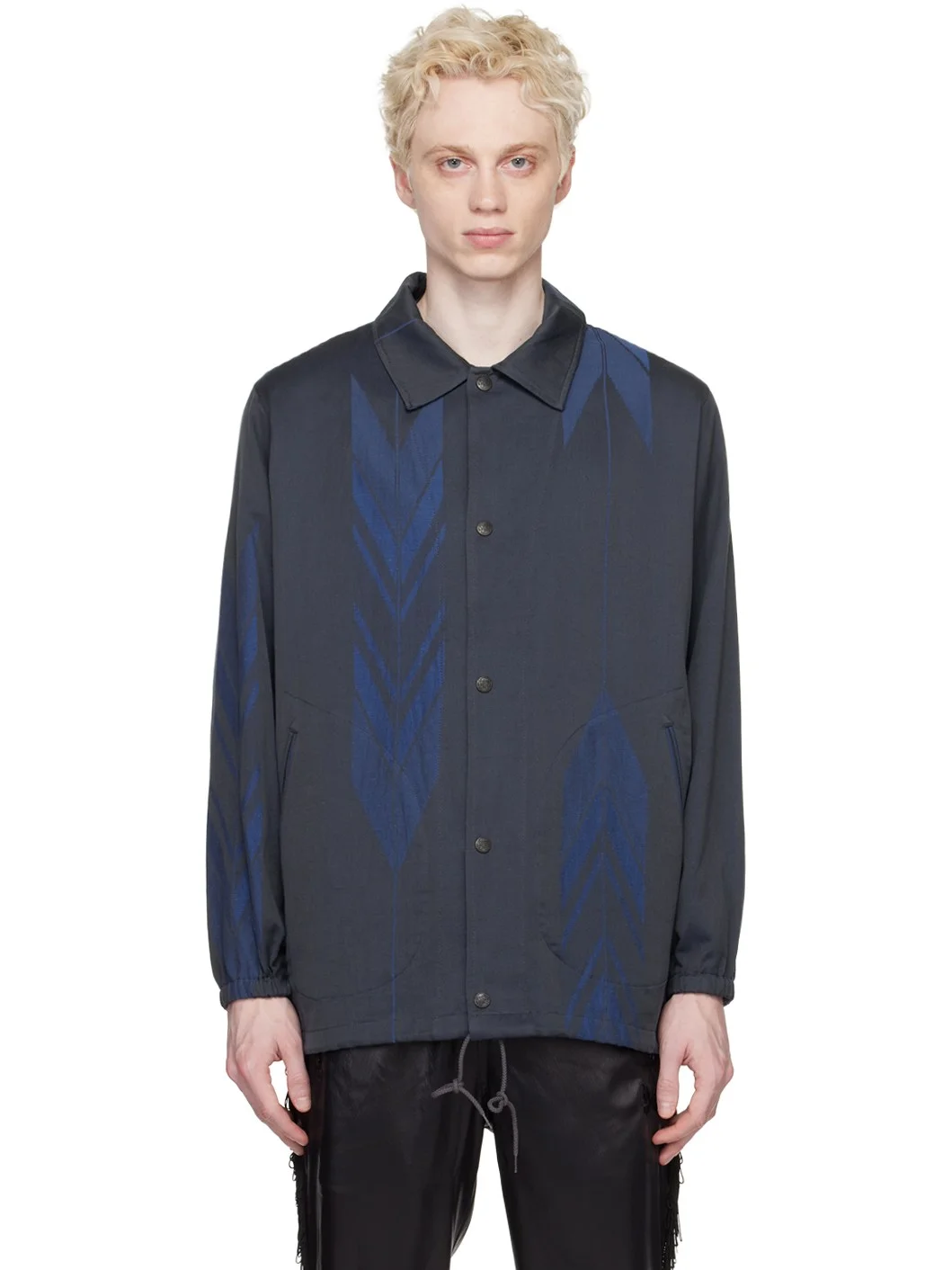 Cotton- and linen-blend broadcloth jacket. Jacquard graphic pattern. · Spread collar · Press-stud closure · Welt pockets · Drawstring at hem · Elasticized cuffs · Unlined Supplier color: Blue arrow 87% cotton, 13% linen. Made in Japan 231821M180001