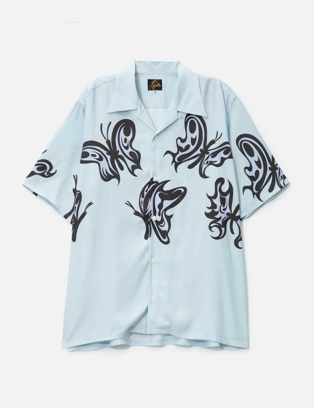 - Needles - Needles x Kae Tanaka One-Up Shirt - Lightweight rayon fabric - Kae Tanaka Papillon graphic at front and rear - Camp collar - Button closure - Straight hem - Color: Light Blue - Material: 100% Rayon - See more Shirts and Clothing - Model wears size M - Model measures: Height 186cm, Chest 34”/86cm, Waist 28”/71cm, Hip 36”/91cm - Vendor Code: QV432
