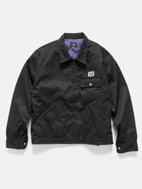 The Needles Work Jacket channels classic American workwear through a refined, modern lens. Cut from durable PE/C twill, it balances a cropped length with a wide, relaxed body for easy layering and everyday wear. Quilted lining adds warmth, while zippered hand pockets and a snap chest pocket keep the silhouette clean and functional. Finished with playful stitching, a signature purple lining, and the papillon label, it delivers utility with unmistakable Needles character. DETAILS - RW211 - Body: 65% Polyester, 35% Cotton - Lining: 100% Cupra - Insulation: 100% Polyester - Wide, cropped fit - Onion quilted lining - Zip front closure - Snap flap closure chest pocket - Zip closure hand pockets - Adjustable snap cuffs - Adjustable snap hem - Woven 'Papillon' label at chest - Made in Japan