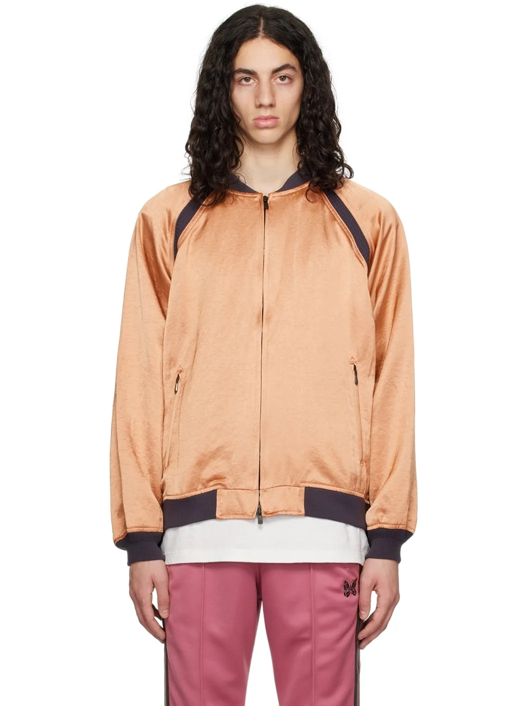 Triacetate- and linen-blend sateen bomber jacket. · Rib knit stand collar, hem, and cuffs · Zip closure · Zip pockets · Raglan sleeves · Satin lining Supplier color: Pink