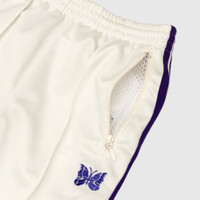 - MR286ICEWHT - A-Ice White A - 100% Polyester - Elastic drawstring waistband - Hand pockets with zip closure - Single back pocket with zip closure - Contrast ribbing along the pant leg - Embroidered butterfly - Regular fit - Made in Japan