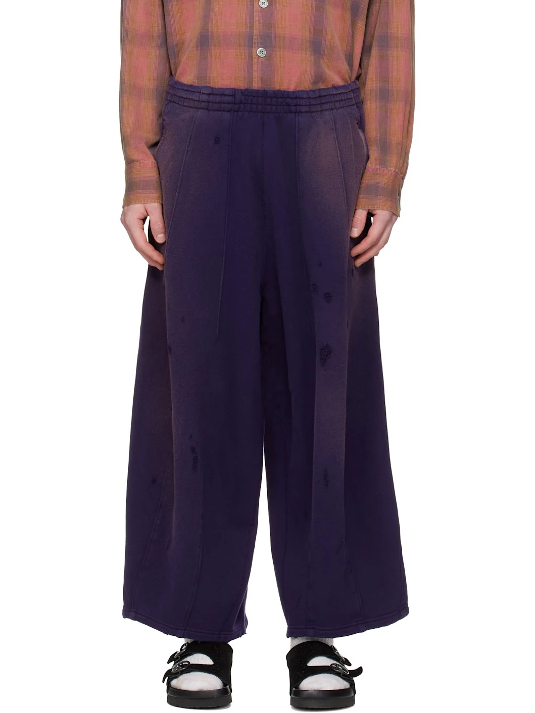 French terry sweatpants. · Fading and distressing throughout · Concealed drawstring at elasticized waistband · Two-pocket styling · Darts at front legs · Rib-knit outseams Supplier color: Purple Body: 100% cotton. Trim: 100% cotton. Made in Japan 251821M190008