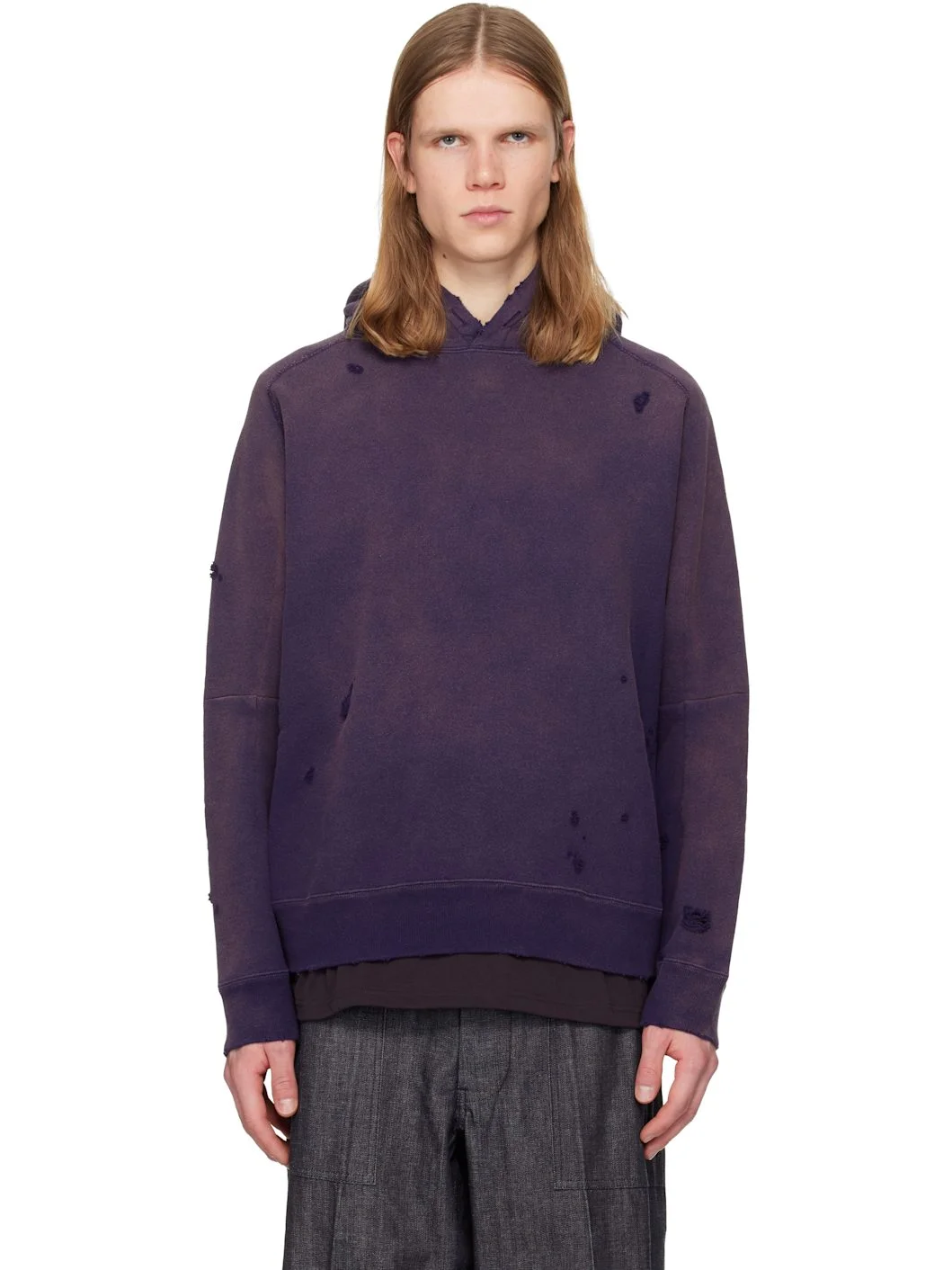 French terry hoodie. · Fading and distressing throughout · Rib-knit hem, side seams, and cuffs · Darts at raglan sleeves Supplier color: Purple Body: 100% cotton. Trim: 100% cotton. Made in Japan 251821M202005