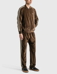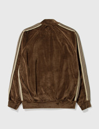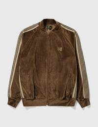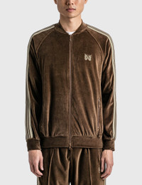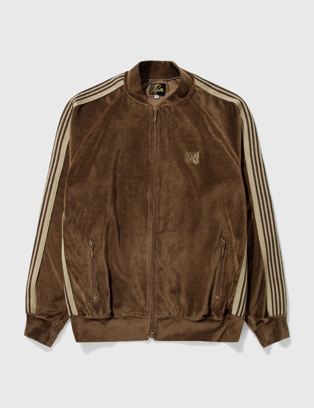 - Needles - R.C. Track Jacket - Soft velour exterior - Zip closure - Embroidered logo at chest - Contrasting stripes at sleeves and sides - Two side zip pockets; two interior mesh pockets - Color: B-Brown - Material: 77% Cotton, 23% Polyester - See more Jackets and Clothing SIZING - Model wears size M - Model measures: Height 183cm, Chest 35.5”/90cm, Waist 30”/76cm, Hip 33”/84cm